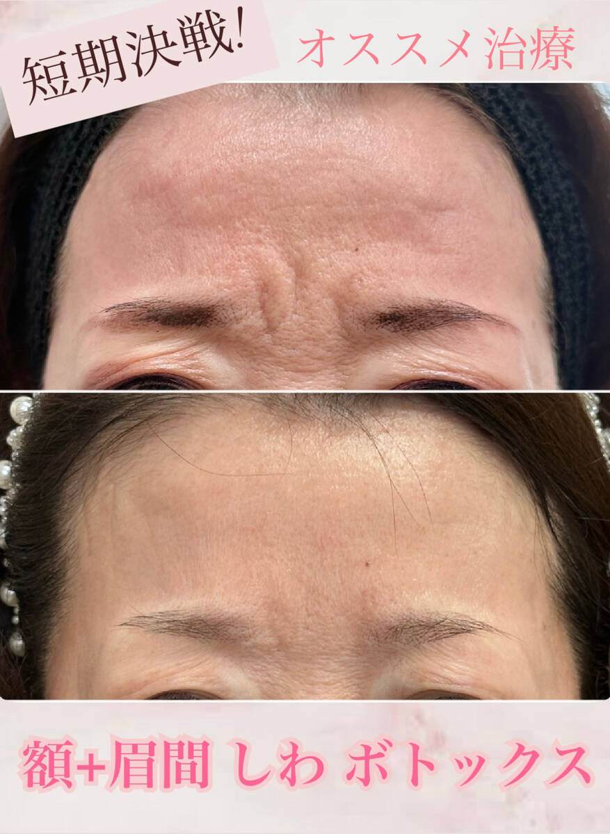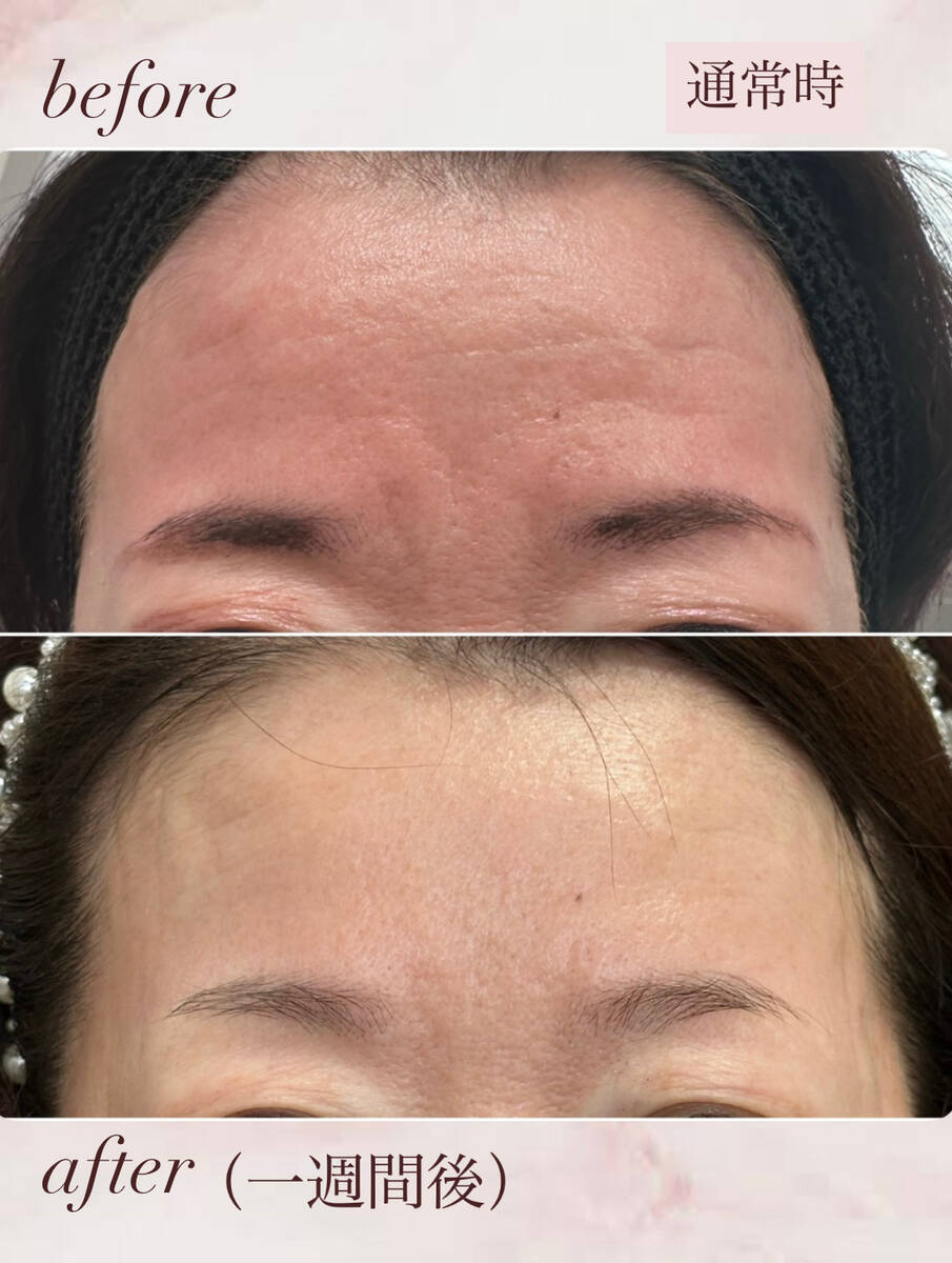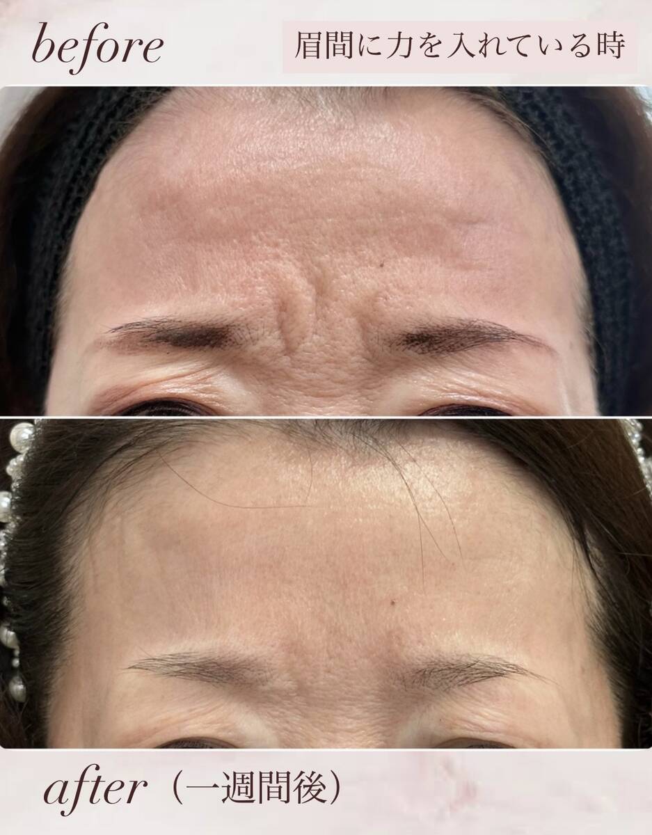 症例の患者さまは、額・眉間へボトックスを注入する前と、1週間後です。