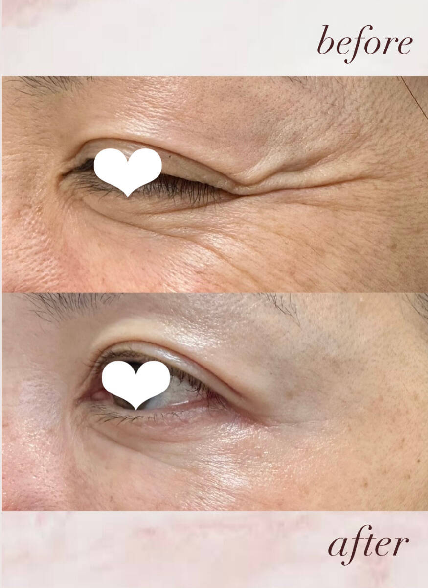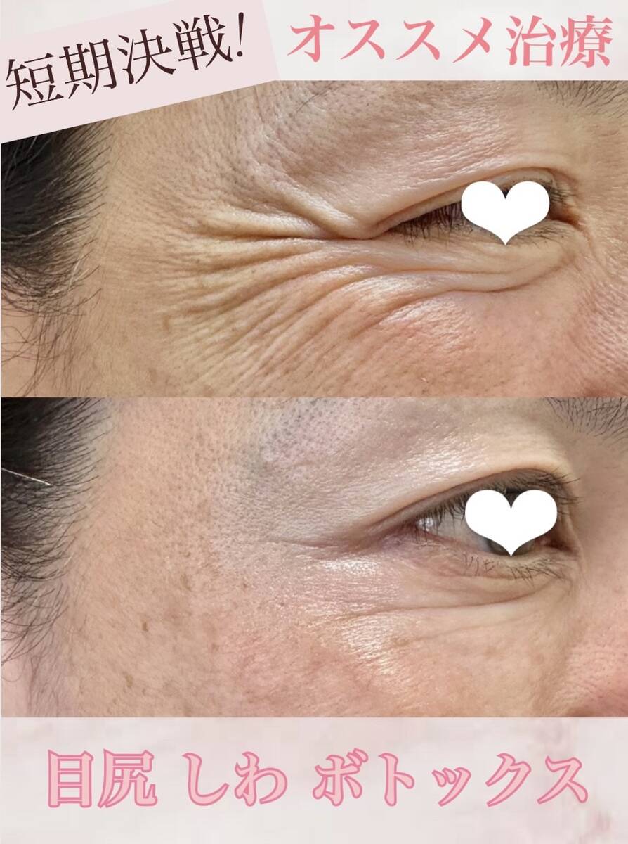 本日は、私のオススメ治療、目尻にシワ寄せた、
